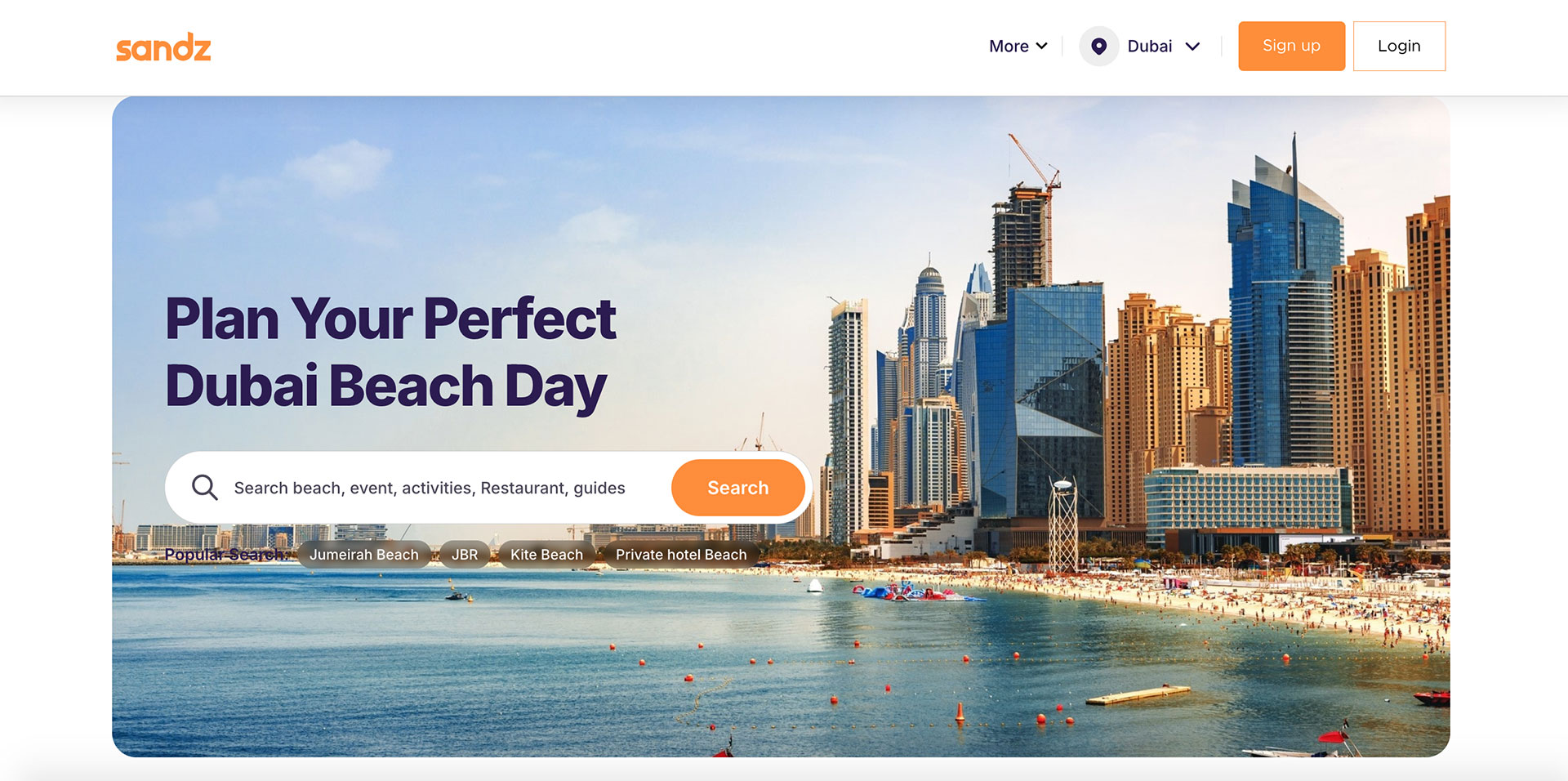Sandz is here to make every beach day unforgettable! Sandz helps you uncover the best of Dubai’s beach life—think secret beach cafes, yoga at sunrise, volleyball tournaments, and the coolest spots for Insta-worthy sunsets. Spend less time planning and more time living your best beach life.